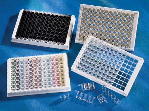 Corning 96 Well Clear Polystyrene High Bind Stripwell Microplate, 25 Per Bag, Without Lid, Nonsterile, Pack of 100